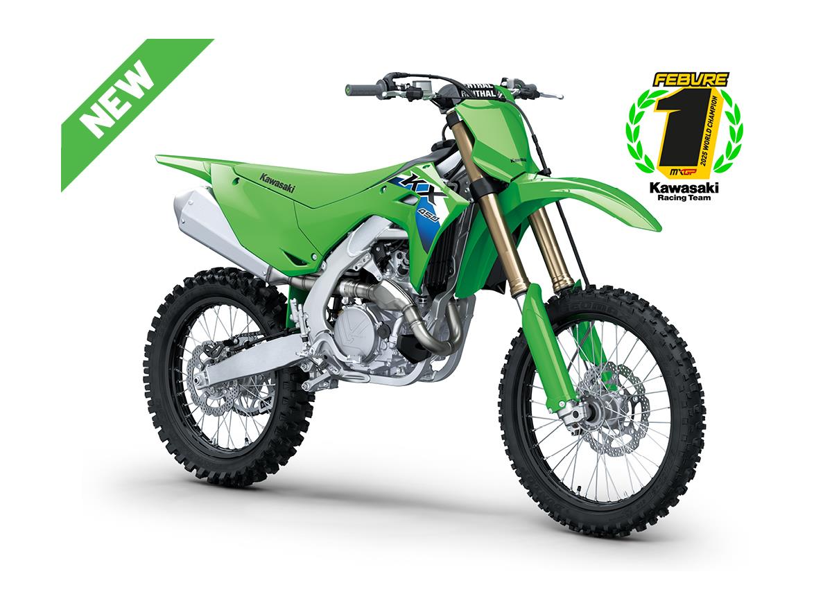 The KX legacy created a long line of champions. The drive to produce more has not slowed down. Our all-new flagship race machine, the KX450 motorcycle, offers next-level engineering and power to dominate the track. Over the decades, we've learned what it takes to win and stay on top. The KX450 embodies this legacy to the fullest.